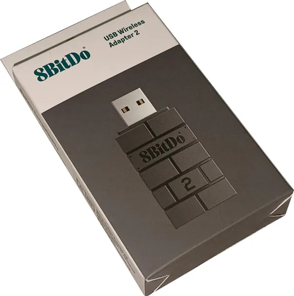 Opakowanie zawiera: adapter 8BITDO Wireless Adapter 2 w kolorze czarnym oraz dokumentację.